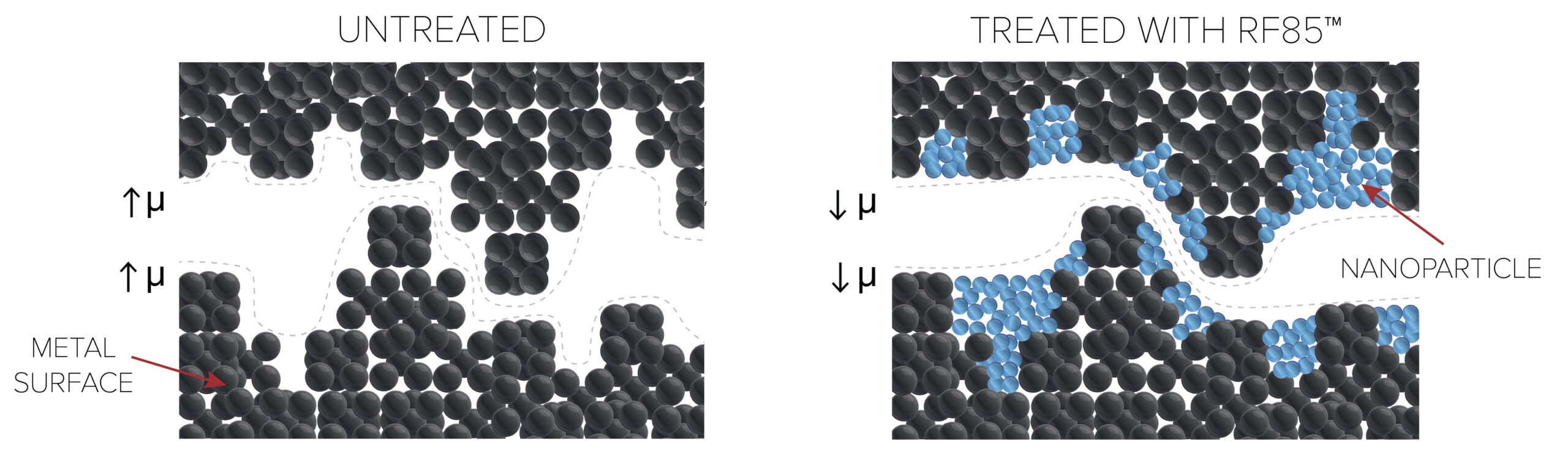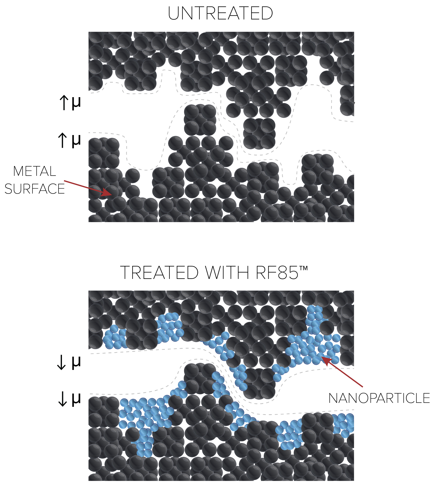 RF85™ is not a coating. It is an anisotropic nanotechnology designed to reduce friction by treating the surface of the metal on a molecular level.